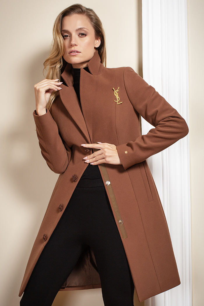 ABRIGO CON CUELLO Y SOLAPA DE LANZA. ABROCHA CON TRES BOTONES DE ADORNO Y BROCHE DE PRESION EN EL INTERIOR, LLEVA POPOTILLO EN EL INTERIOR EN BROCHES. TALLE DELANTERO CON CORTE TIPO FRANCES, BOLSAS DE VIVO DE ALETILLA EN COSTADOS. COSTADILLO RECTO. ESPALDA CON CORTE TIPO FRANCES. MANGA LARGA DE DOS PIEZAS. ABRIGO CON FORRO. PLACA EN CINTURA LADO IZQUIERDO Y PLACA HECHO EN MEXICO.
