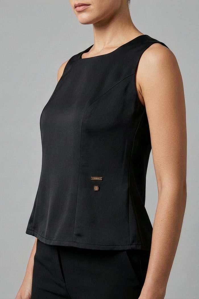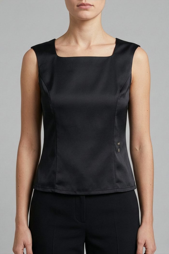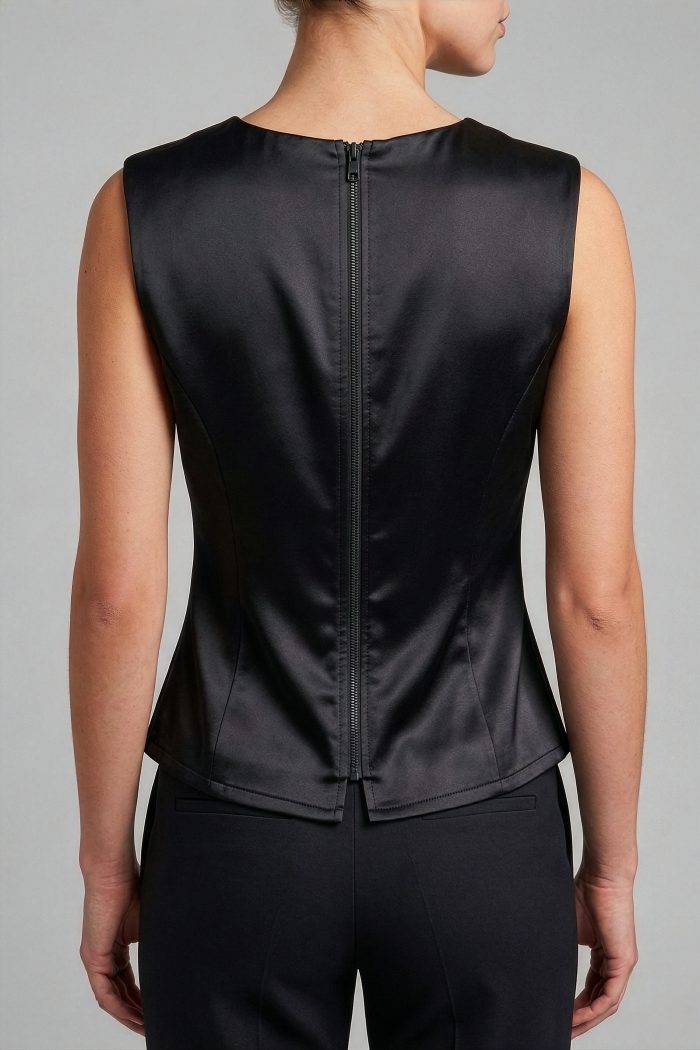 BLUSA CON ESCOTE SEMI CUADRADO. TALLE DELANTERO CON CORTE PRINCESA. ESPALDA CON CORTE PRINCESA, CIERRE SEPARABLE EN CENTRO ESPALDA. PLACA MUSSI EN CINTURA LADO IZQUIERDO. PLACA MEXICO ABAJO DE LA MUSSI LADO IZQUIERDO