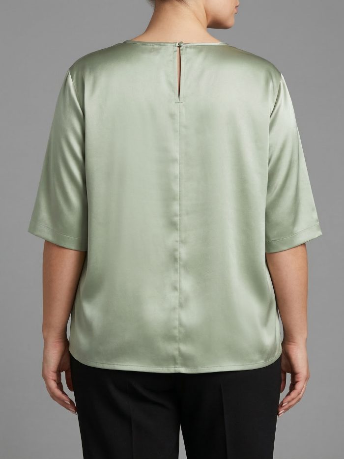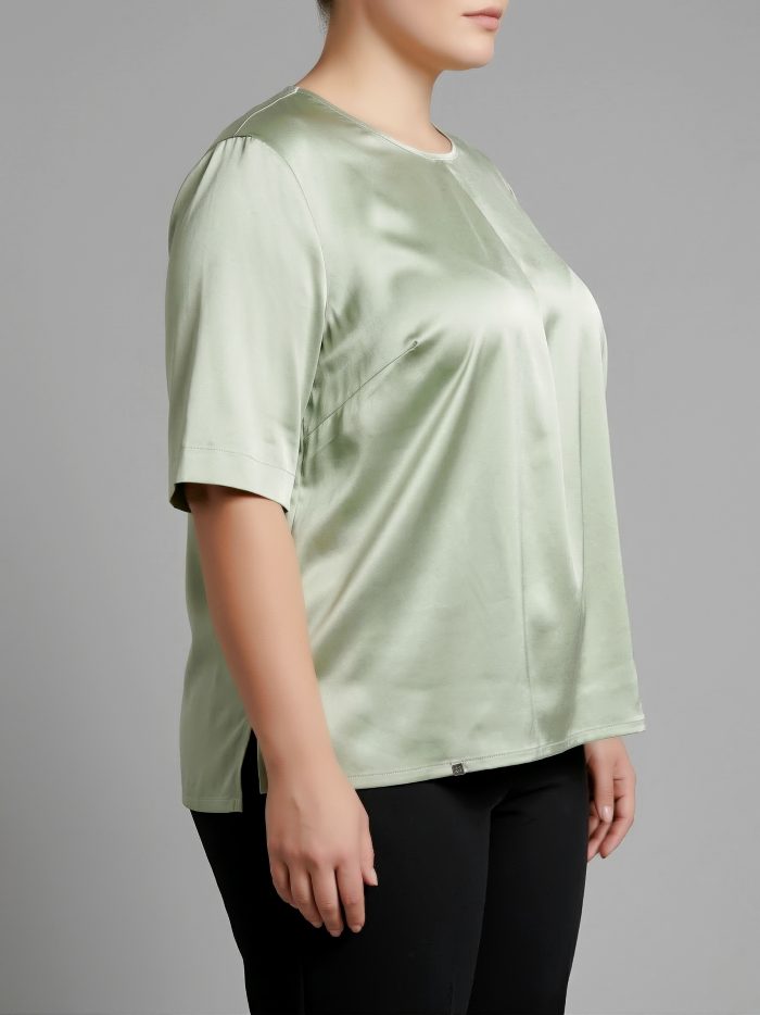 BLUSA ESCOTE REDONDO CON UN PLIEGUE EN EL CENTRO DELANTERO Y MANGA CORTA.