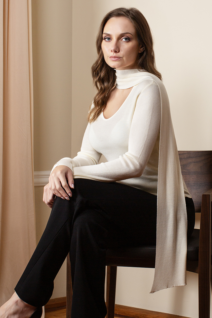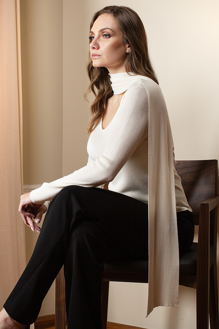 BLUSA EN TEJIDO DE PUNTO CON BUFANDA INTEGRADA, MANGA LARGA