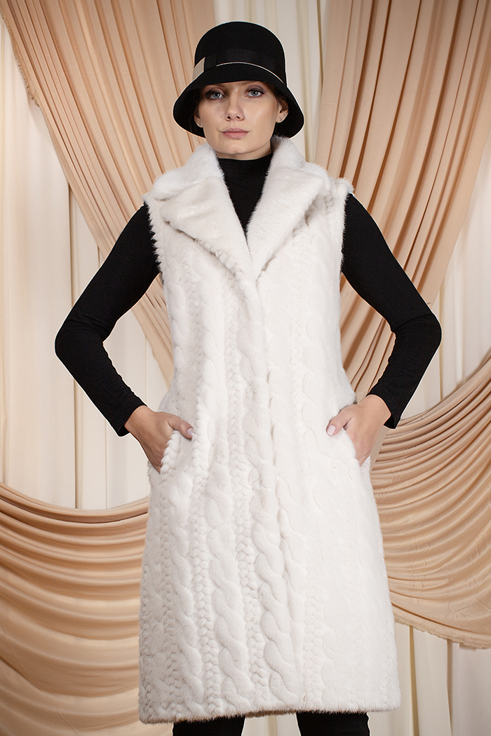 CHALECO LARGO CON SOLAPA CIERRE NORMAL CON BROCHES DE PRESION Y BOLSAS LATERALES