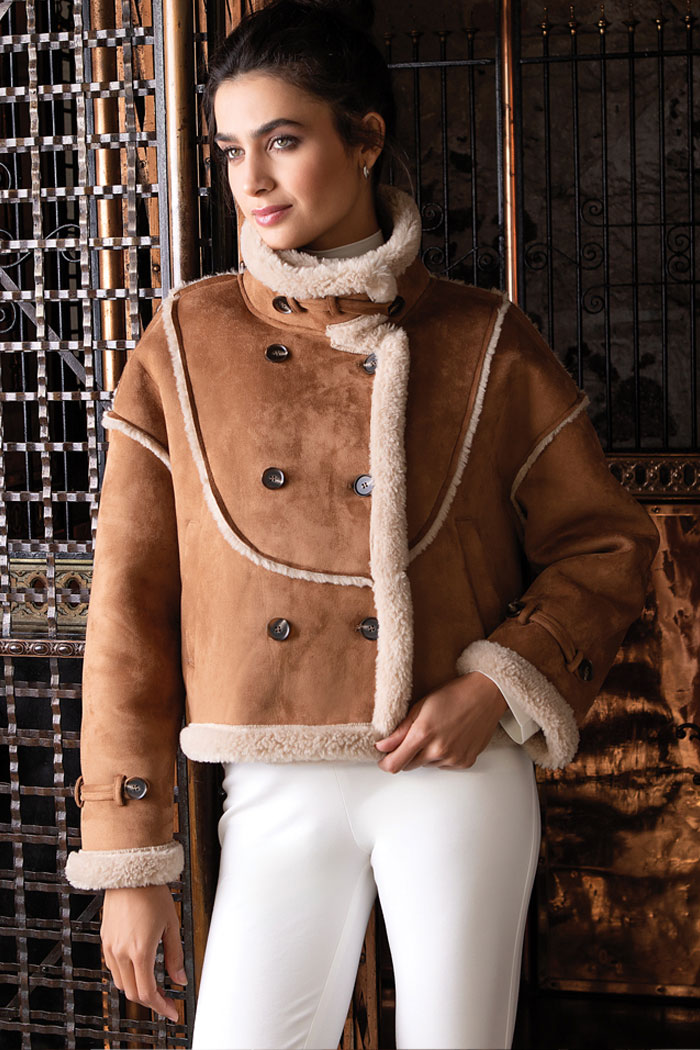 TEJIDO PLANO 100% POLIÉSTER, OVERZISE, CUELLO ALTO, BOLSILLOS Y BOTONES AL FRENTE
