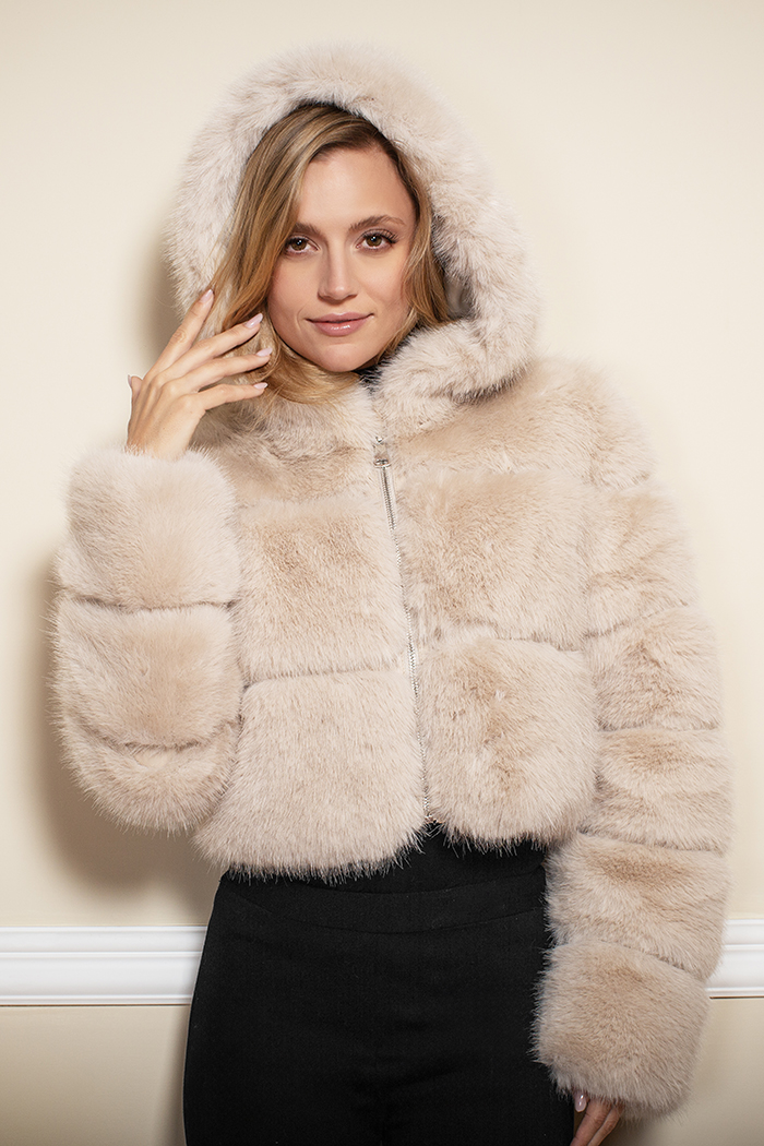 CHAMARRA CON CIERRE DELANTERO, GORRO Y MANGA LARGA