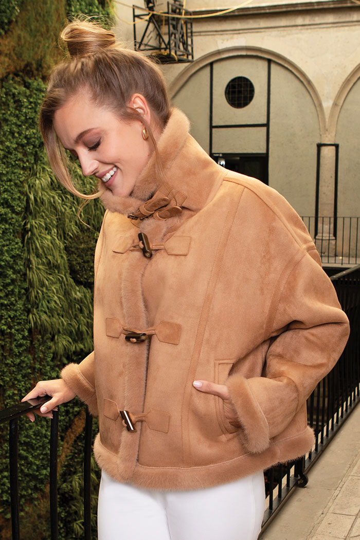TEJIDO PLANO 100% POLIÉSTER, OVERZISE, CUELLO ALTO, BOLSILLOS Y ALAMARES AL FRENTE