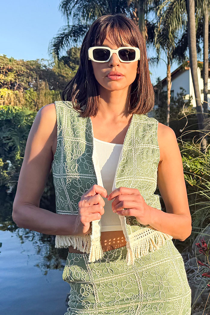 CONJUNTO DE 3 PIEZAS: CHALECO, TOP Y FALDA CORTA CON BOLSILLOS