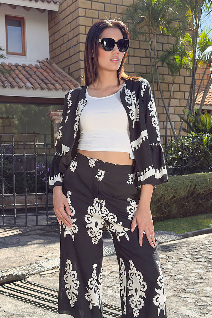 CONJUNTO DE 3 PIEZAS: SACO ABIERTO, TOP, PANTALON CON BOLSILLOS