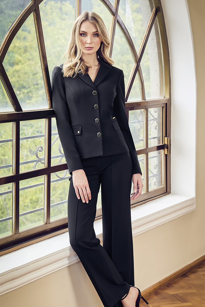PANTALON CON PRETINA CURVA DE TRES PIEZAS CON PASE Y BROCHE TIPO CABALLERO. DELANTERO CON QUIEBRE Y COSTILLA DE 1/16 EN QUIEBRE. CIERRE EN DELANTERO, CON FALSO Y OJALERA. TRACERO CON PIERNA RECTA. PLACA MUSSI EN COSTADO IZQUIERDO EN PRETINA Y PLACA MEXICO EN COSTADO DERECHO ABAJO DE PRETINA