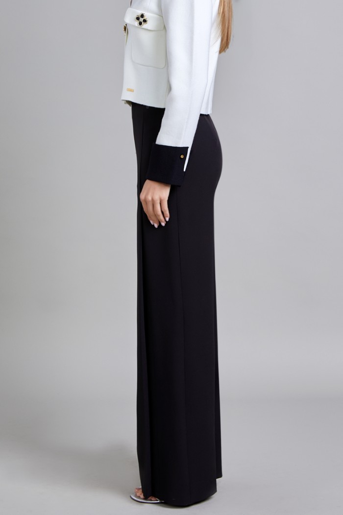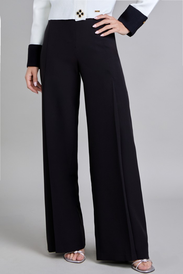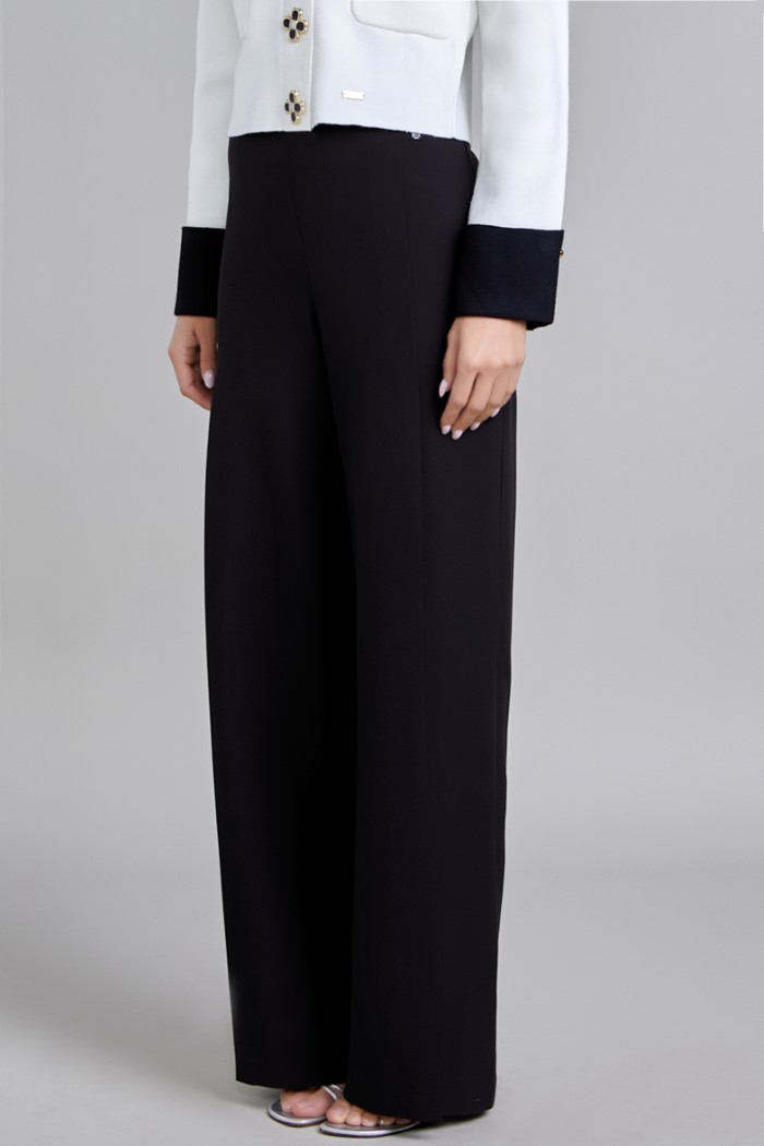 PANTALON CINTURA ALTA CON NERBURAS EN EL CENTRO DEL DELANTERO, PIERNA AMPLIA.