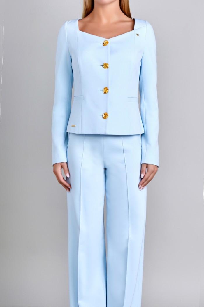 PANTALON CINTURA ALTA CON UNA NERBURA EN EL CENTRO DEL DELANTERO ,CIERRE EN EL COSTADO Y PIERNA AMPLIA.