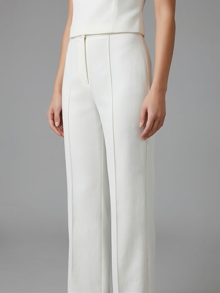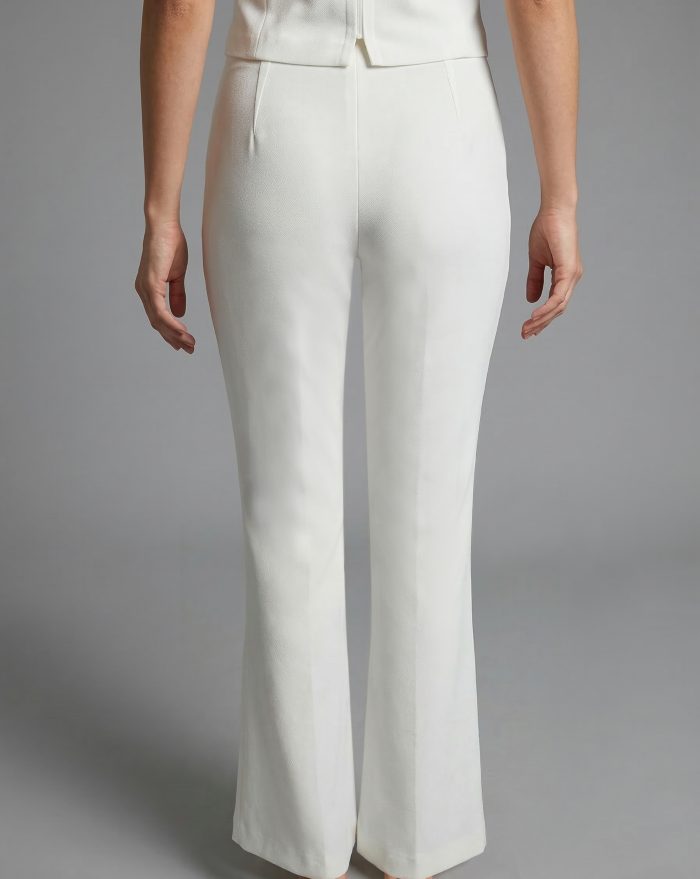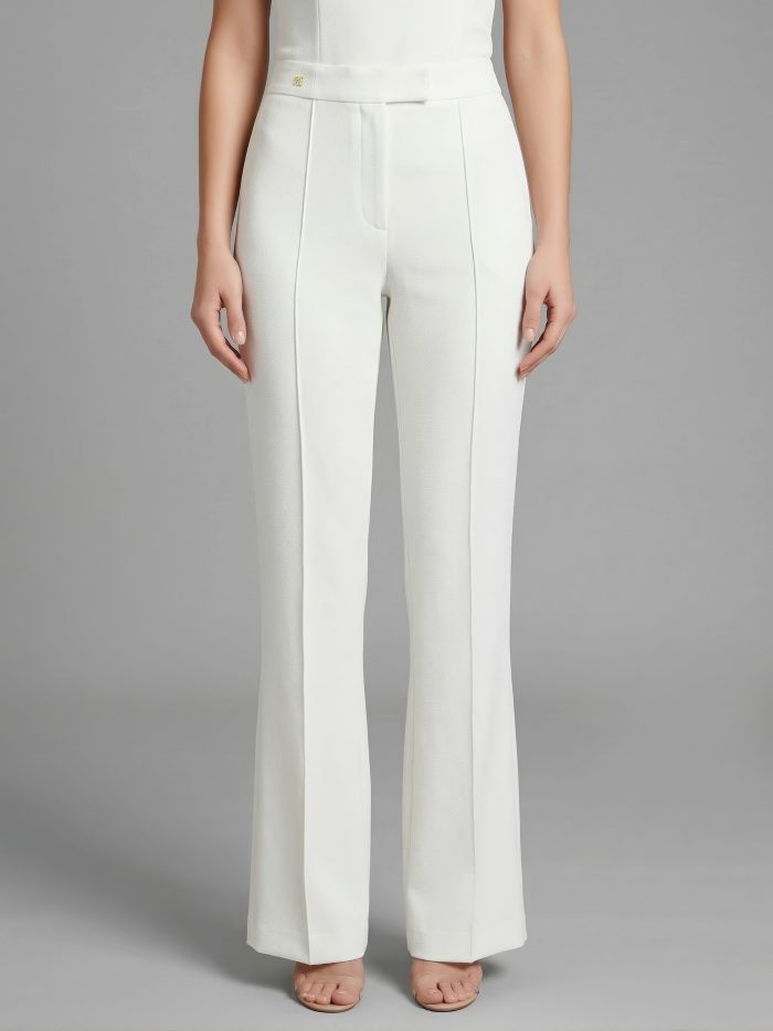 PANTALON CON PRETINA CURVA DE TRES PIEZAS CON PASE, BROCHE DE PANTALON CABALLERO Y BOTON DE CONTRA. CIERRE EN DELANTERO CON OJALERA Y FALSO. BOLSA DIAGONAL EN COSTADO. PIERNA RECTA Y RUEDO CON AMPLITUD TIPO CAMPANA. LLEVA QUIEBRE CON PESPUNTE AL FILO. TACERO CON PINZA LATERAL SE MARCA QUIEBRE. PLACA MUSSI EN CINTURA IZQUIERDA. PLACA MEXICO EN CINTURA DERECHA