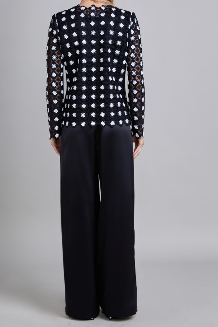 PANTALON CON VISTAS EN EL INTERIOR DE CINTURA. DELANTERO CON PIERNA AMPLIA, CIERRE EN COSTADO IZQUIERDO. ESPALDA CON PIERNA AMPLIA. PLACAS EN CINTURA LADOO IZQUIERDO