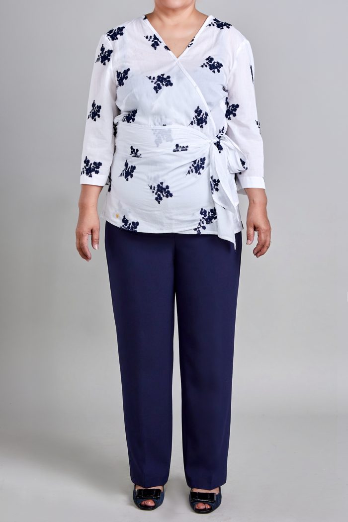 PANTALON CON PRETINA RECTA CON PASE Y BOTON FORRADO DE LA MISMA TELA. BOTON INTERNO DE CONTRA. CIERRE EN DELANTERO CON OJALERA Y FALSO. PIERNA RECTA. TRACERO CON PINZA LATERAL PIERNA RECTA
