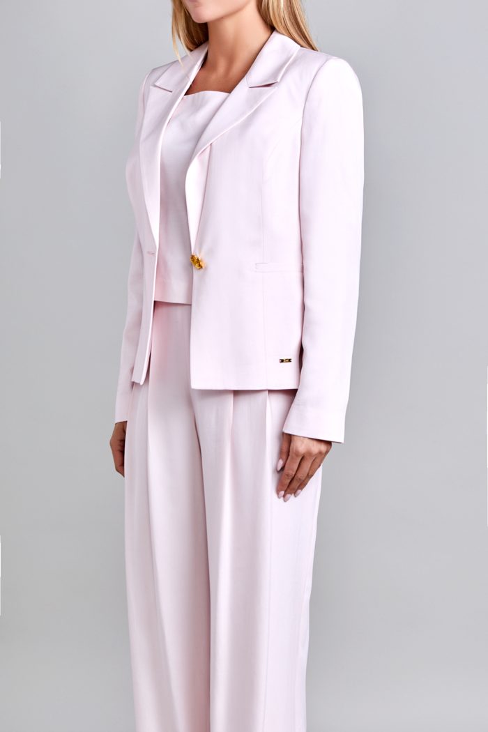 SACO SOLAPA DE LANZA ,CRUCE NORMAL CON UN BOTÓN CORTE PRINCESA Y BOLSA DE UN SOLO VIVO DE 1/2″, LLEVA COSTADILLO Y ESPALDA CORTE EN CENTRO,MANGA LARGA DE 2 PIEZAS CON 5 BOTONES DE ADORNO EN LA BOCAMANGA DELANTERA.