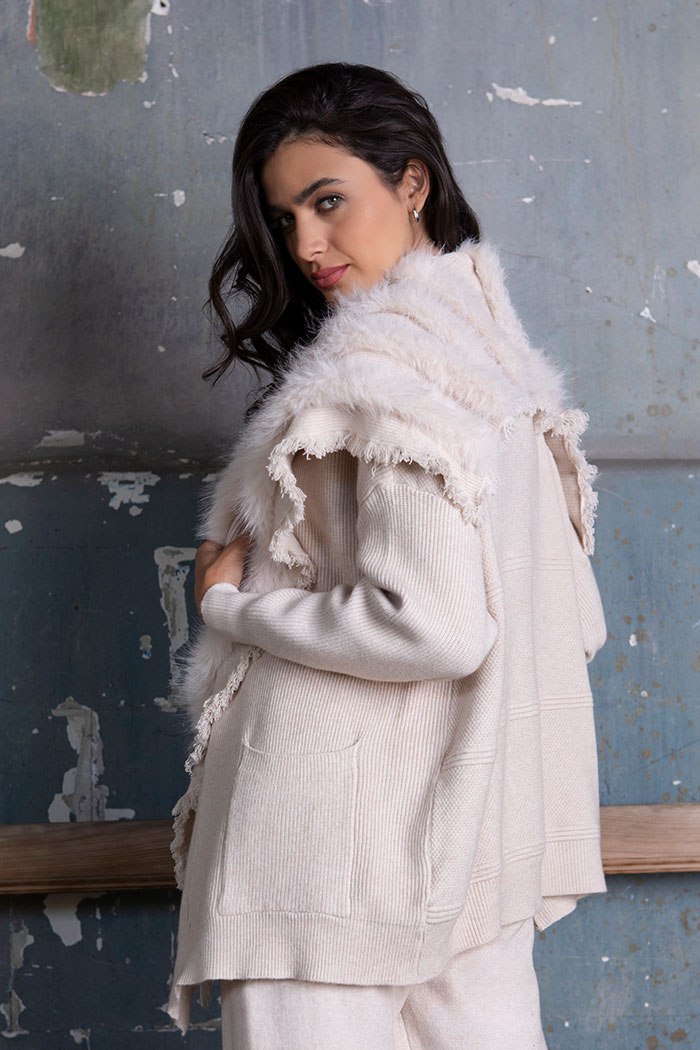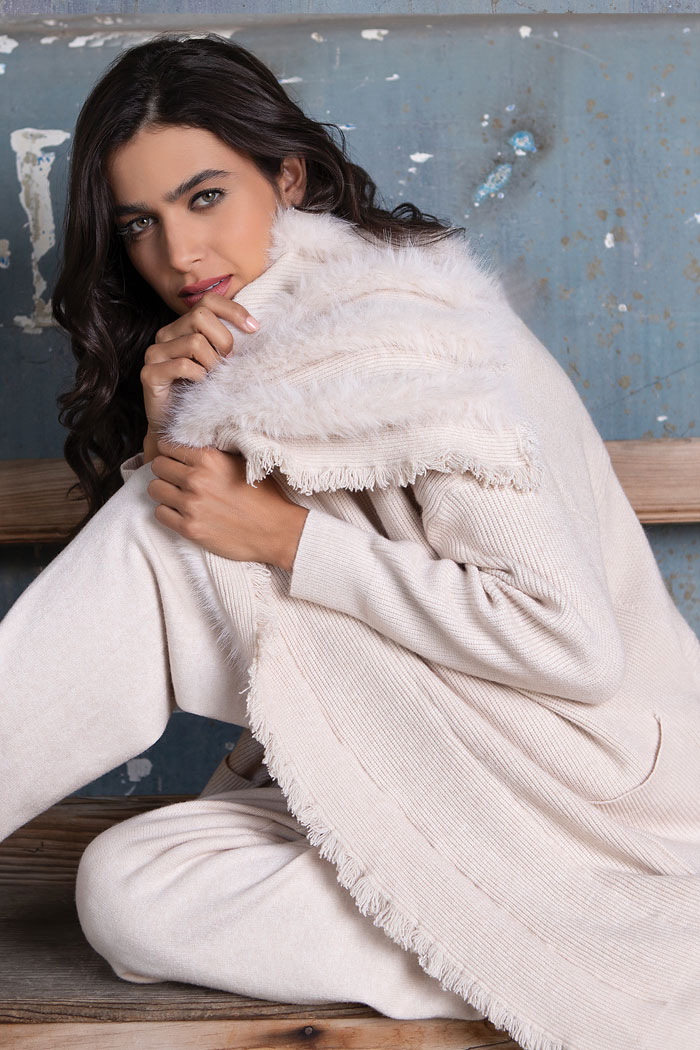 TEJIDO DE PUNTO 40% VISCOSA 35% POLIAMIDA 15% MODAL 10% ELASTANO, MANGA LARGA, BOLSAS Y APLICACIONES