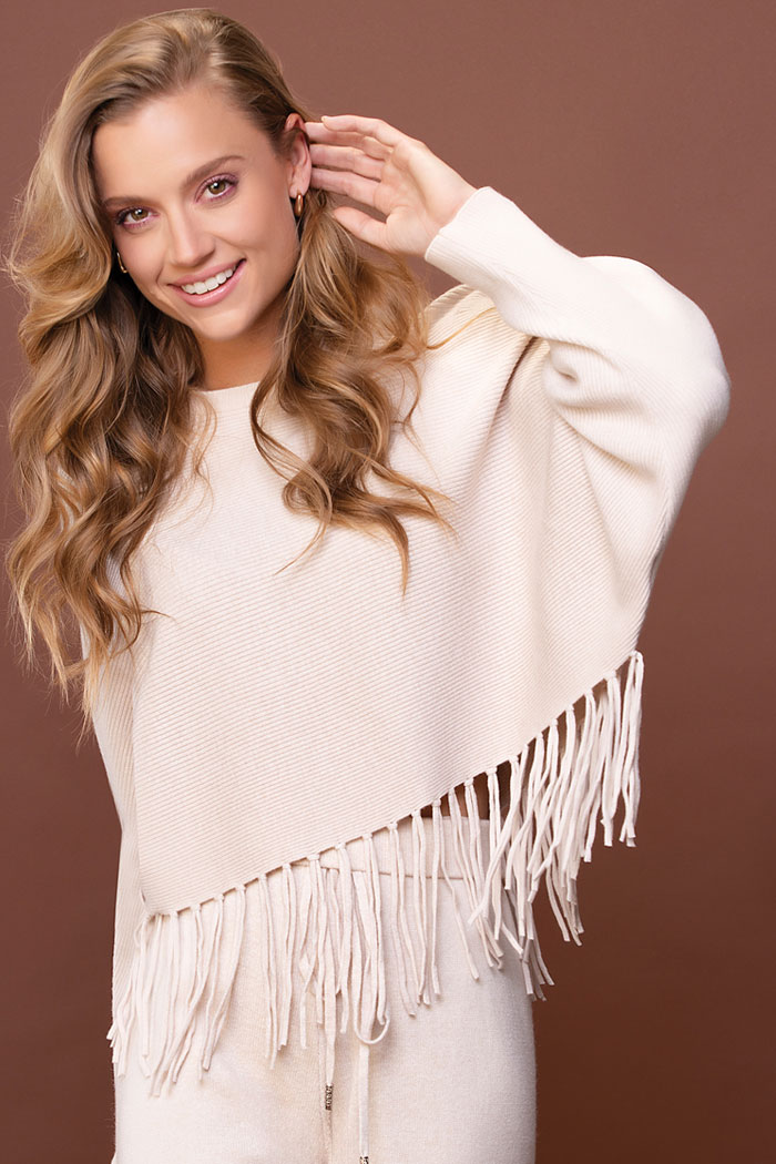 TEJIDO DE PUNTO 40% VISCOSA 35% POLIAMIDA 15% MODAL 10% ELASTANO, CUELLO REDONDO, MANGA LARGA, ADORNO DE FLECO