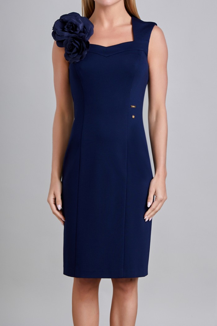 VESTIDO SISADO ESCOTE DIAMANTE CON INCRUSTACION,CORTE PRINCESA EN DELANTERO Y ESPALDA. CIERRE EN EL CENTRO DE LA ESPALDA.Y ABERTURA EN LA PARTE INFERIOR .LLEVA 3 FLORES DE ADORNO. EN EL HOMBRO LADO DERECHO.