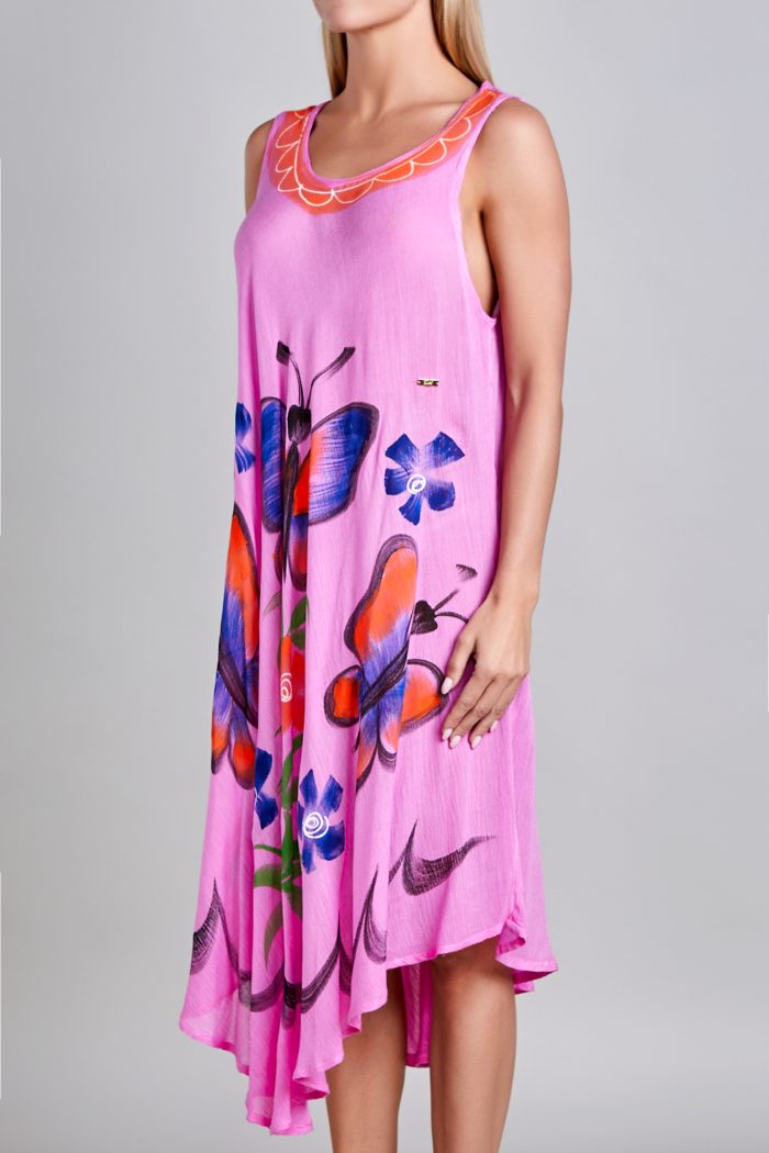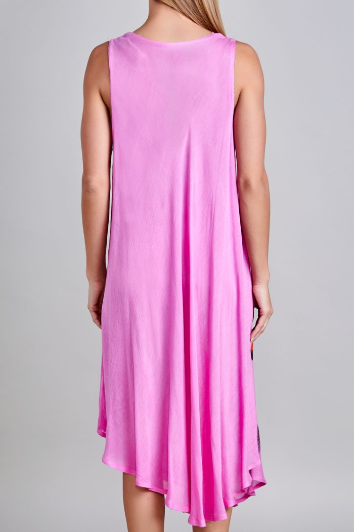 VESTIDO SIN MANGA, CORTE ASIMÉTRICO, ESCOTE REDONDO
