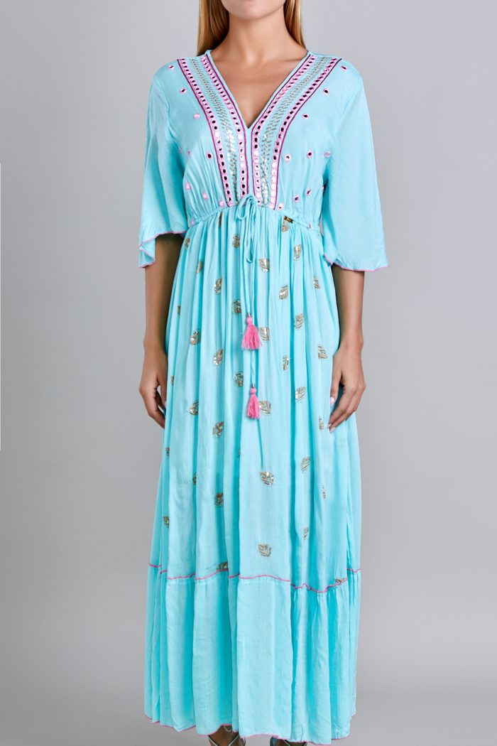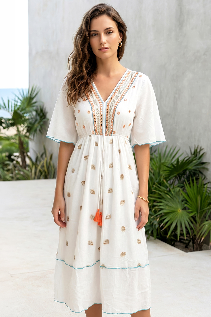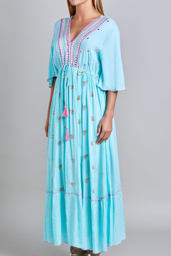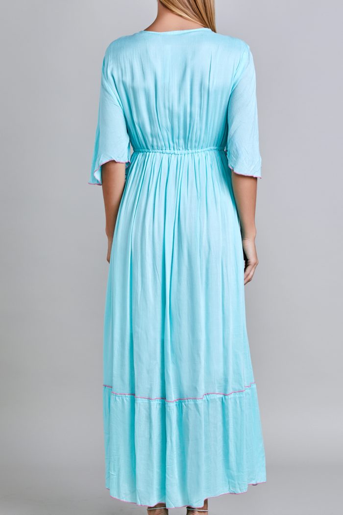 VESTIDO MANGA 3/4, ESCOTE EN V, RESORTE EN CINTURA