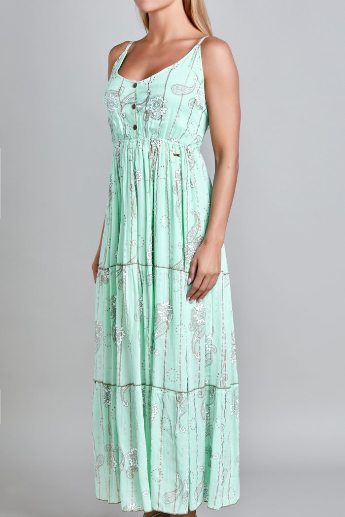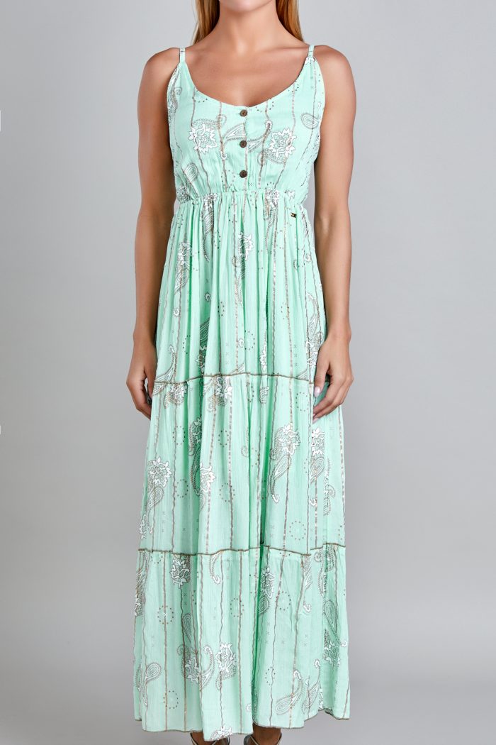 VESTIDO CON TIRANTES, SIN MANGA, ESCOTE AL FRENTE, SMOCK EN LA ESPALDA