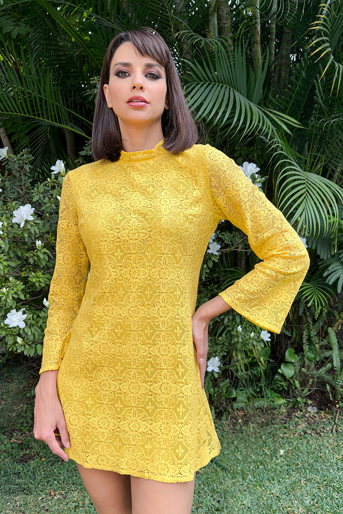 VESTIDO CUELLO MAO, MANGA LARGA, LLEVA FORRO
